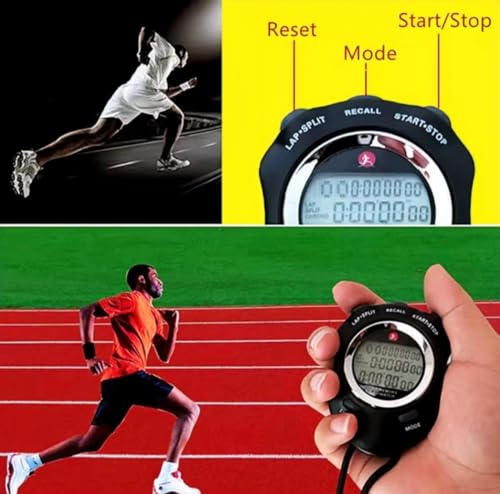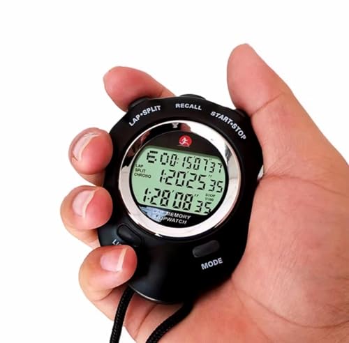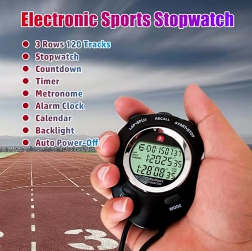 Generic - ساعة توقيت رياضية إلكترونية احترافية، شاشة LCD رقمية، 120 مسار، مع مؤقت عد تنازلي، منبه، تقويم، إضاءة خلفية، مناسبة للرياضة والتدريب