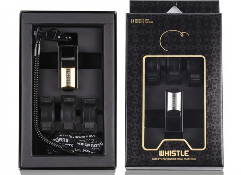 - علبة تخزين فاخرة: تتضمن علبة تغليف أنيقة باللون الأسود والذهبي لحماية الصافرة وتخزينها بشكل آمن عند عدم الاستخدام