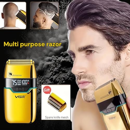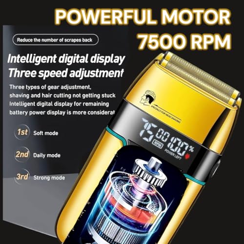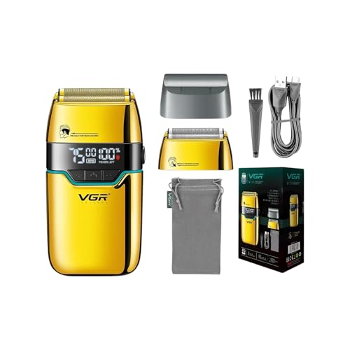 Generic - ماكينة حلاقة الرقائق الاحترافية للرجال v-350 جسم معدن بالكامل موتور تربو ذكي 7500 RPM شفرات مزدوجة عائمة 3 سرعات 1200 mAh Li-ion شحن USB مناسبة bald head وقت التشغيل 180 دقيقة