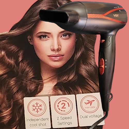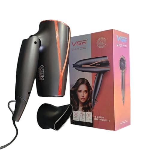 Generic - مجفف ومصفف الشعر الاحترافي قابل للطي مناسب للسفر سرعتان وبخاصية الحماية من درجات الحرارة العالية، 1600.0 واط، اسود