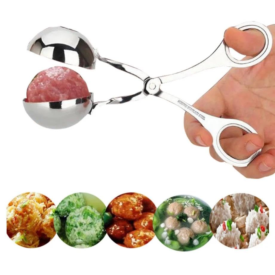 Generic - اداة تشكيل الطعام الاحترافية - جهاز من الستانلس ستيل عالي الجودة لصنع كرات اللحم بشكل موحد وقوالب الايس كريم وتشكيل الكيك، بما في ذلك ملاقط غير لاصقة للحصول على نتائج سريعة.