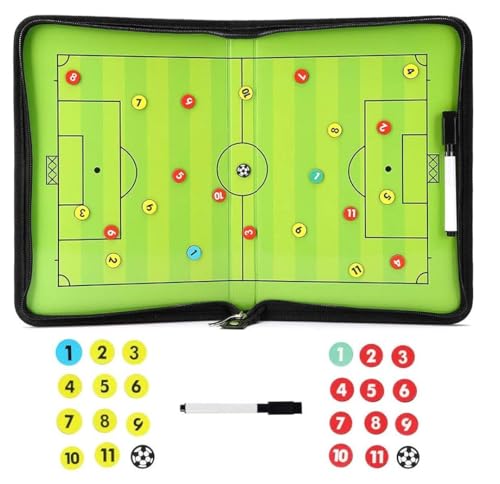 Generic - لوحة تكتيكية تدريبية احترافي لكرة القدم، لوحة مغناطيسية قابلة للطي محمول لوضع الخطط الاستراتيجية لتدريبات كرة القدم مع قطع مغناطيسية ملونة لتمثيل اللاعبين، قلم ماركر وأداة للمسح