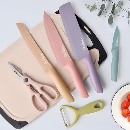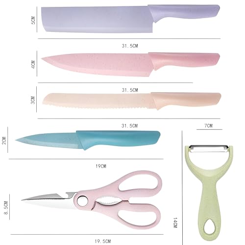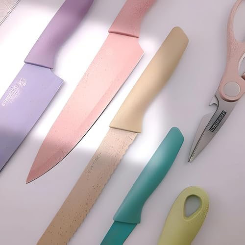 Generic - مجموعة سكاكين جرانيت احترافية - 6 قطع شفرات حادة للغاية من الستانلس ستيل مع قبضة مرمزة بالألوان ومقشرة ومقص شديد التحمل لطهي خالٍ من العيوب