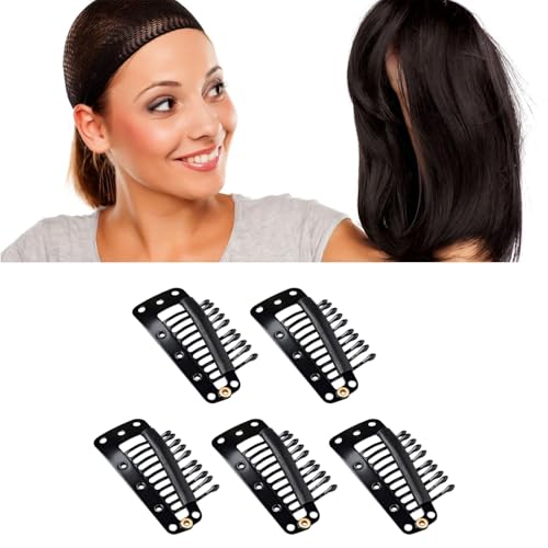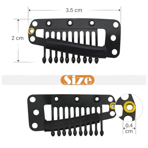 Generic - مشابك تثبيت احترافية لوصلات الشعر، معدن اسود، للشعر المستعار والوصلات عبوة من 5 قطع (3.5 سم × 2 سم)