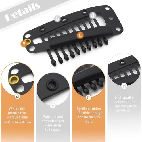 - الأبعاد: مقاس كل مشبك كبس هو الحجم المثالي لربط آمن لوصلات الشعر والشعر المستعار