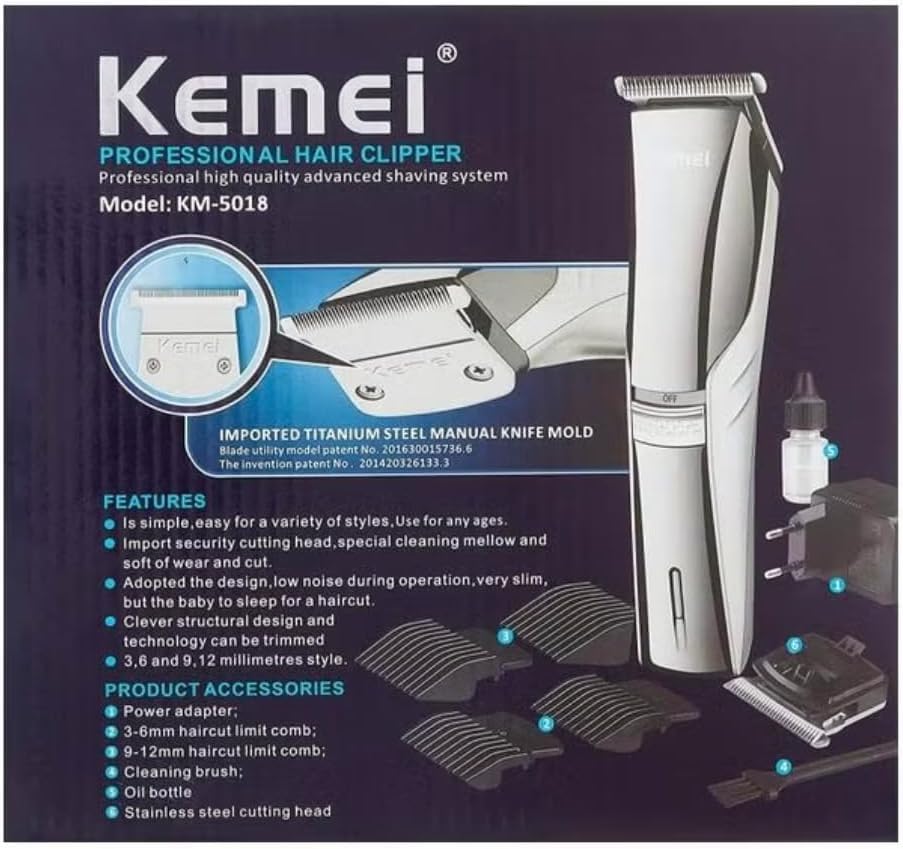 Generic - ماكينة حلاقة احترافية لاسلكية km-5018 مع ماكينة حلاقة و4 اأشاط توجيه وحامل شحن