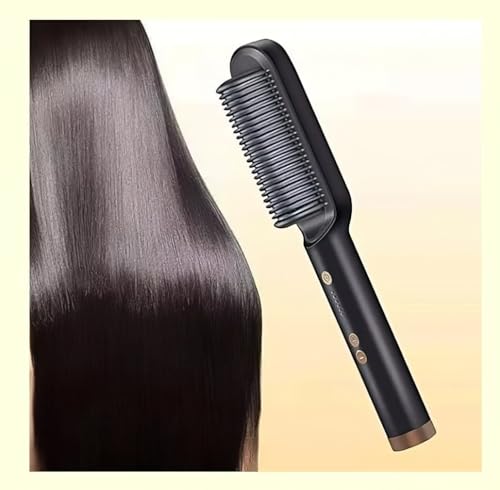 Generic - فرشاة فرد الشعر الاحترافية 3 في 1 تمليس بالسيراميك الجاف والساخن مع 5 إعدادات لدرجة الحرارة مضادة للحروق حماية ضد الحروق أسود