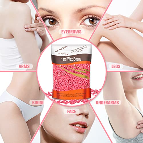 Milukon - خرز شمع صلب احترافي لازالة الشعر لجميع الجسم والساقين والوجه والحواجب بدون الم، 500 جرام كهدية للنساء والرجال (متعدد الألوان)