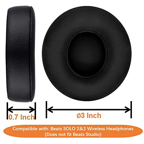QOQOON - وسائد أذن احترافية من جلد صناعي وفوم معزز بديلة لسماعات رأس بيتس سولو 2 و3 اللاسلكية ذات التصميم الذي يغطي الأذن ولا تناسب بيتس ستوديو بلون أسود من كيوكيون