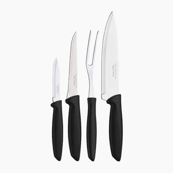 - مجموعة احترافية: مجموعة سكاكين مطبخ كاملة مكونة من 4 قطع تتميز بشفرات فاخرة من الستانلس ستيل ومقابض سوداء مريحة للتحكم الدقيق في القطع