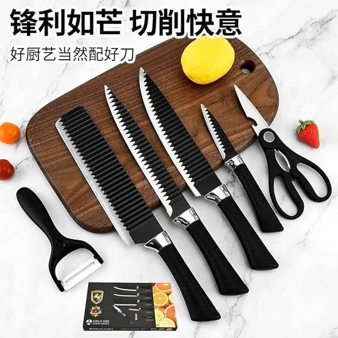 Generic - طقم سكاكين مطبخ احترافية مع مقشرة وأمشاط، مجموعة أدوات مائدة من الفولاذ المقاوم للصدأ من 6 قطع