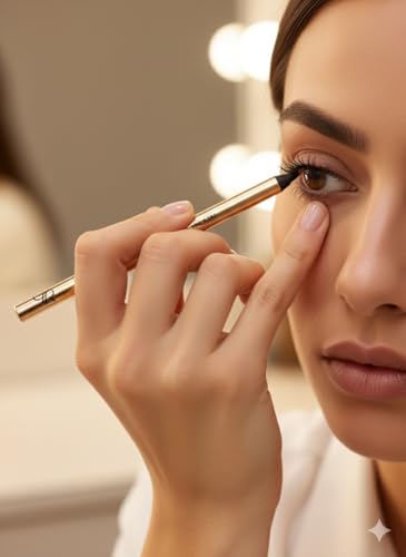 • استخدام دقيق: قلم تحديد العين جاف ذهبي (ذهبي ميتاليك) بطرف أسود مصمم لتطبيق دقيق وسلس على طول خط الرموش.