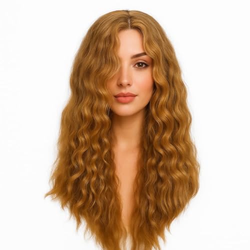 DILLARDS - شعر مستعار احترافي طويل مموج بلون بني عسلي ذهبي، شعر صناعي مقاوم للحرارة، امواج شاطئ ذات مظهر طبيعي، طول اضافي