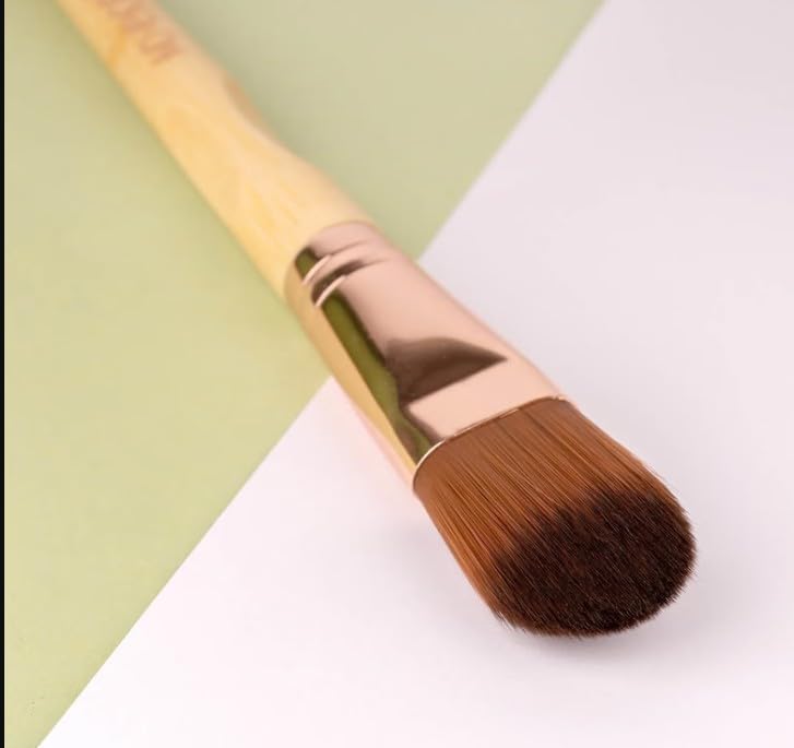 - أ. فرشاة المكياج: فرش كريم الأساس ناعمة وكثيفة وحريرية، مما يوفر لك شعورًا مريحًا وسلسًا؛ يمكن استخدام الفرشاة لوضع بودرة الأساس وأحمر الخدود وكريم الأساس السائل وكريم الأساس الكريمي، فهي جيدة لجعل كريم الأساس الخاص بك يبدو لطيفًا ورائعًا.