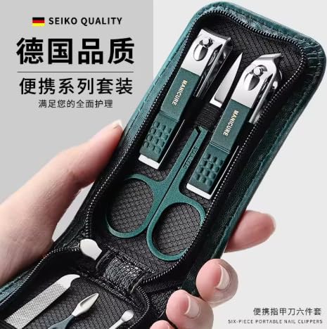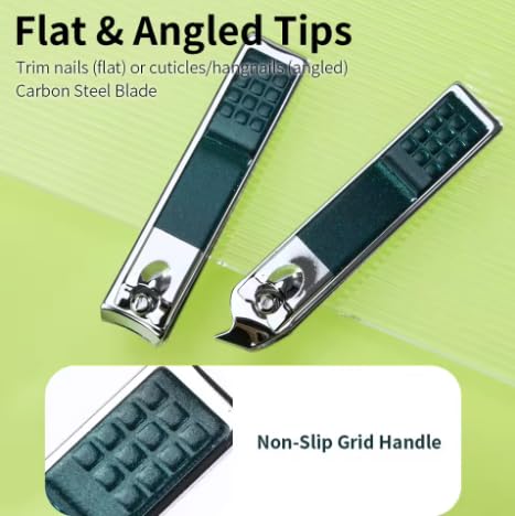 Generic - طقم مقص أظافر احترافي مع حافظة سفر، مقصات مسطحة ومائلة، مقبض مانع للانزلاق، فولاذ كربوني، أسود