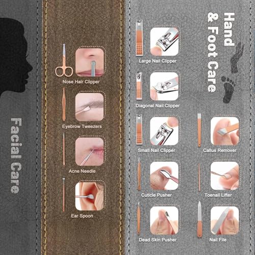 - مجموعة العناية الكاملة المكونة من 12 قطعة - تتضمن مجموعة المانيكير والباديكير هذه مجموعة مختارة بعناية من أدوات العناية بالأظافر والعناية بالأظافر المصممة للعناية باليدين والقدمين والوجه. بدلاً من شراء ملحقات متعددة، توفر مجموعة العناية الشخصية الشاملة هذه كل ما يلزم لتقليم الأظافر والتحكم في الزوائد اللحمية والحفاظ على العناية الأنيقة. مثالية لروتين النظافة اليومية في المنزل أو أدوات العناية أثناء السفر أو اللمسات السريعة عندما تريدين الحفاظ على أظافرك وبشرتك نظيفة والحفاظ عليها جيدًا.