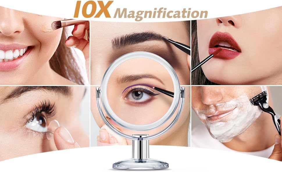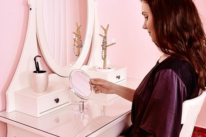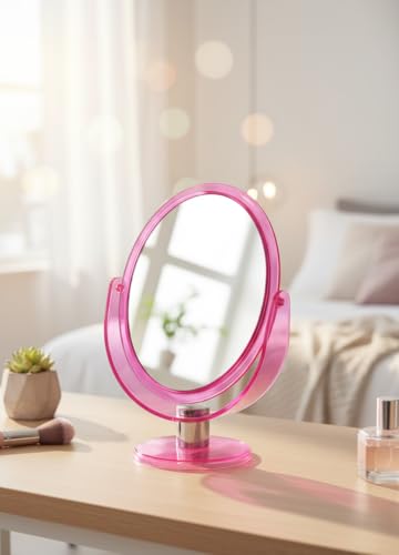 Generic - مرايا بيضاويه احترافية بدوران 360 درجة لتجربة يومية مريحة ورؤية مثالية من جميع الاتجاهات تمنحك الاستخدام المنزلي أو في التنقل-تكبير 1x و10x -بينك شفافة