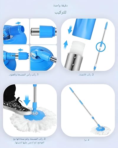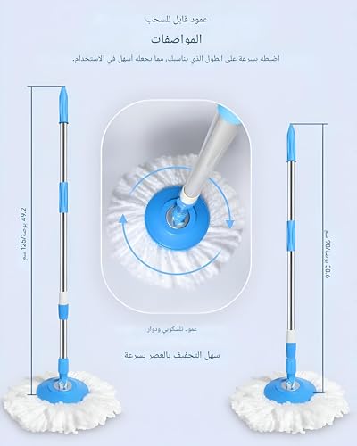 Generic - مساحة موب دوارة احترافية بمقبض صلب برأس دوار 180 درجة وعمود قابل للتمدد حتى 48 سم بخيارات متعددة الألوان مناسبة للعناية السريعة والشاملة بالأرضيات