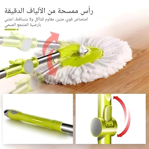 - رأس مايكروفايبر كبير بقياس 18 سم، يوفر تغطية ممتازة وسرعة في تنظيف الأرضيات، مع نظام قفل دوار آمن يسهل التحكم وينسجم مع جميع أنواع الأرضيات، مما يجعل التنظيف أسهل وأكفأ.