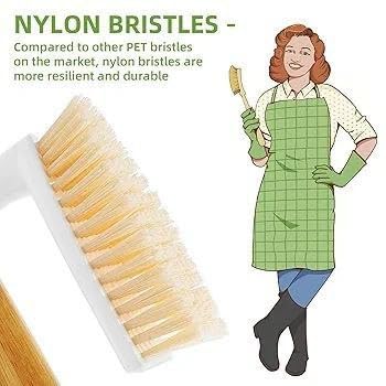 - مقبض خشبي طبيعي متين: يوفر المقبض الخشبي القوي متانة ممتازة مع توفير قبضة مريحة وآمنة أثناء الاستخدام. يسمح تصميمها المريح بالتحكم بشكل أفضل أثناء الفرك، مما يقلل من إجهاد اليد ويحسن كفاءة التنظيف. يضيف الهيكل الخشبي الطبيعي أيضًا مظهرًا كلاسيكيًا وأنيقًا مقارنة بفرش التنظيف البلاستيكية العادية.