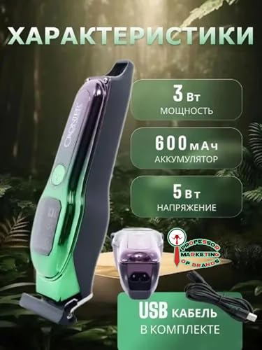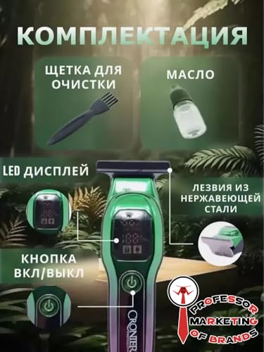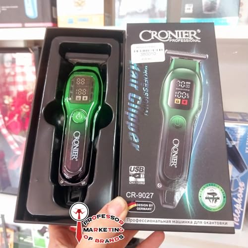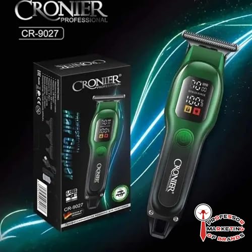 Cronier Professional - ماكينة حلاقة احترافية بشاشة LED ، روسي الصنع مع شفرات من الفولاذ المقاوم للصدأ، بطارية 600 مللي أمبير، 3 واط، مع ملحقات قابلة للتبديل - CR-9027