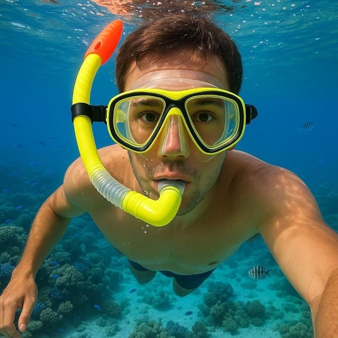 Generic - مجموعة غوص احترافية – أنبوب تنفس مع قناع رؤية واسعة مضاد للضباب – تصميم مريح للسباحة والغوص تحت الماء