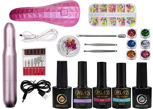 WINZI - مجموعة اظافر جل ناعمة احترافية للمبتدئين مع مصباح بالاشعة فوق البنفسجية ومبرد اظافر كهربائي - 3 الوان جل، طبقة قاعدية وعلوية، ديكورات فن الاظافر وادوات الزوائد اللحمية - مجموعة كاملة للمبتدئين في
