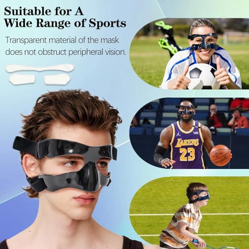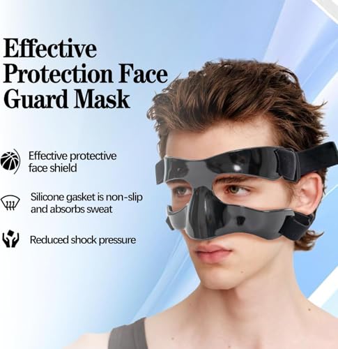 - حماية احترافية: قناع واقي للوجه مصمم خصيصاً لحماية الأنف والوجه أثناء ممارسة الرياضات مثل كرة السلة وكرة القدم والكرة اللينة