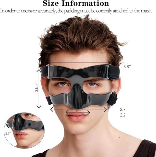 Generic - واقي وجه رياضي احترافي، واقي انف للانف المكسور، اقنعة واقية للوجه للتدريب على كرة السلة وكرة القدم والكرة اللينة مع بطانة اسفنجية مقاس موحد للرجال والنساء، اسود