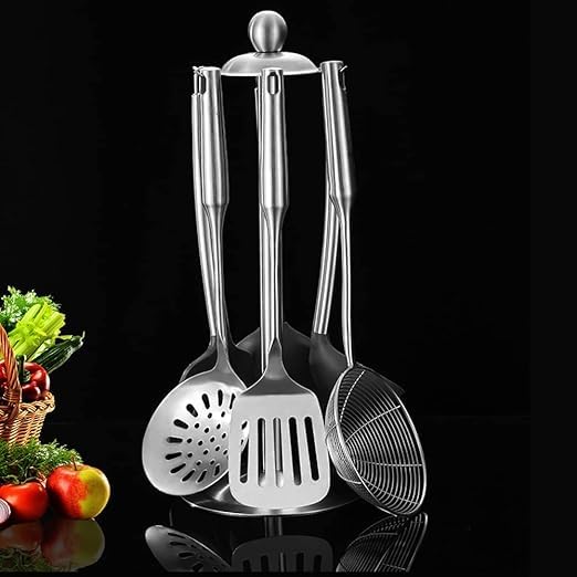 Generic - ملعقة مسطحة احترافية من الستانلس ستيل 304، مقبض مقاوم للحرارة، ملعقة تقليب للمطبخ