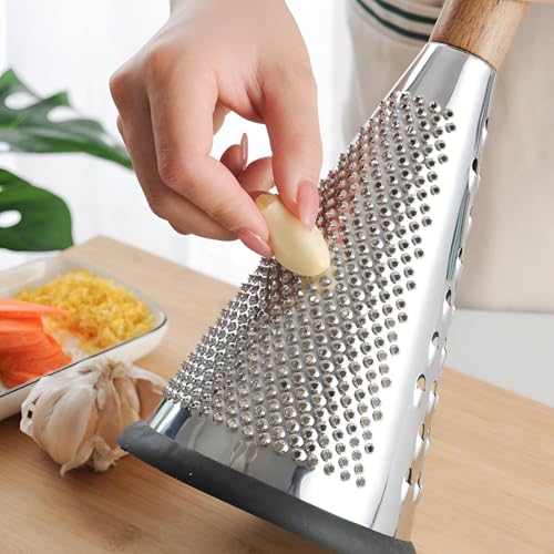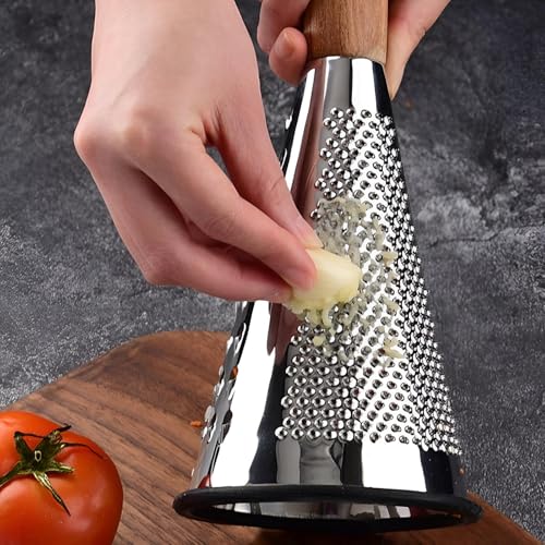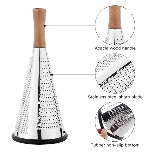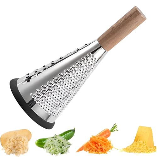 Generic - مبشرة مطبخ مخروطية احترافية من الستانلس ستيل - 3 انواع من الشفرات (خشنة ودقيقة ومسحوقة) - تصميم عصري بمقبض خشبي طبيعي لسهولة التحكم