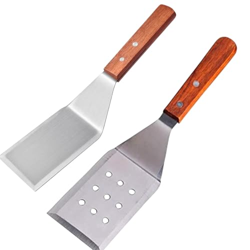 Generic - ملعقة سمك احترافية من فولاذ مقاوم للصدأ مع مقبض خشبي، فضي وبني، ملعقة مشقوقة للشوي والقلي والطبخ، طول 28.5 سم، مجموعة من قطعتين