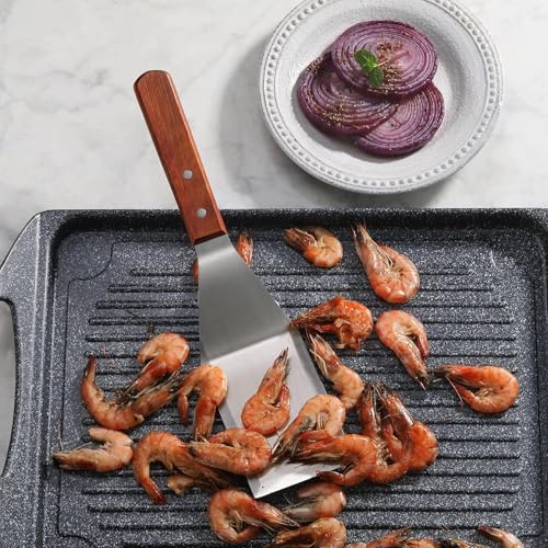 - متعددة الاستخدامات: مثالية للتعامل مع الأسماك الرقيقة وشرائح اللحم والبيض والأطعمة الأخرى على شوايات تيبانياكي وأسطح الطهي المختلفة