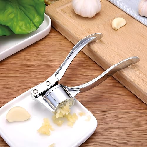 Generic - مطحنة الثوم الاحترافية المصنوعة من الفولاذ المقاوم للصدأ مع آلية ضغط سهلة الاستخدام، باللون الفضي، مثالية لتعزيز نكهة أطباقك