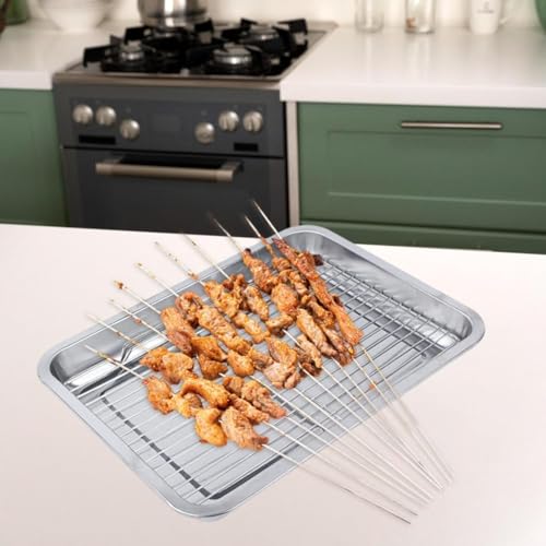 AREXOL - طاسة تحميص مستطيلة احترافية من الفولاذ مقاوم للصدأ مع شبكة شواء متينة ومقابض جانبية مناسبة للمندي والكبسة وأطباق الفرن والطبخ للأسر الكبيرة، مقاس 42 سم