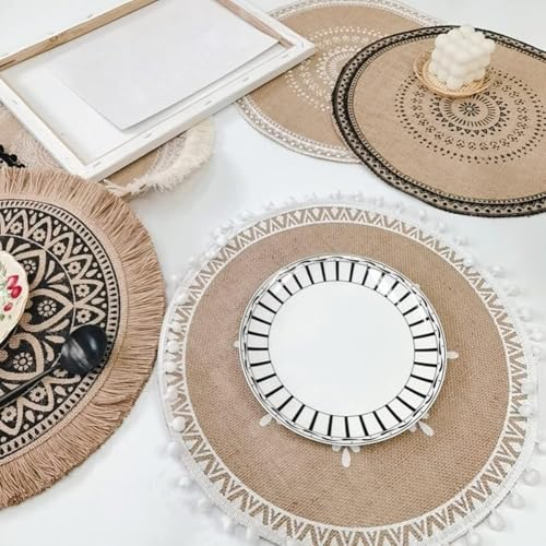 Generic - مفرش أواني مائدة احترافية - قاعدة أكواب كبيرة من الخيش بقطر 38 سم لعرض الطعام، مناسبة للمطاعم والمناسبات الخاصة والعشاء الرسمي (1 قطعة)