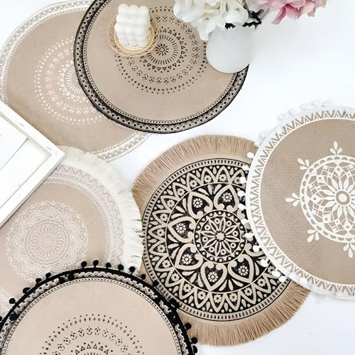- تتميز هذه المجموعة من مفارش الأطباق المستديرة بتصميم ماندالا نابض بالحياة، مما يضيف لمسة من النمط البوهيمي إلى أي مائدة طعام أو طاولة قهوة، بحيث يحولها إلى إضافة مثالية للاستخدام في المنزل أو المطعم أو المناسبات بفضل جاذبيتها البصرية.