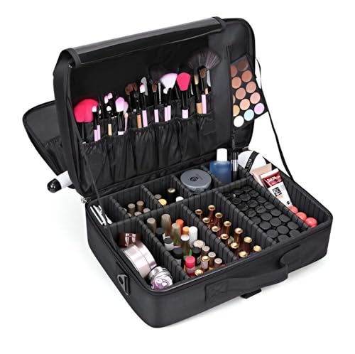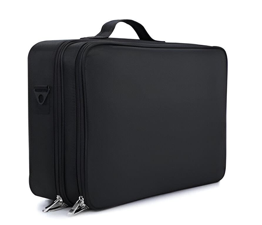 Generic - حقيبة مكياج احترافية بثلاث طبقات - منظم تخزين مستحضرات التجميل المتين المقاوم للماء مع مساحات تخزين مقسمة للسفر، مثالية لفناني المكياج والاستخدام اليومي بلمسة نهائية سوداء.