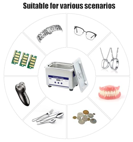 - آلة واحدة متعددة الاستخدامات: مناسبة للاستخدام المهني والمنزلي على حد سواء، حيث تتميز بسعة 0.8 لتر تجمع بين الحجم المدمج والعملية، ويمكنها تنظيف المجوهرات، والنظارات، والساعات، والأدوات المعدنية، والمكونات الإلكترونية وغيرها. مناسبة للاستخدام في المختبرات ومتاجر المجوهرات والمنازل وغيرها من الاستخدامات، ويكون الأداء أفضل عند استخدامها مع منظفات.