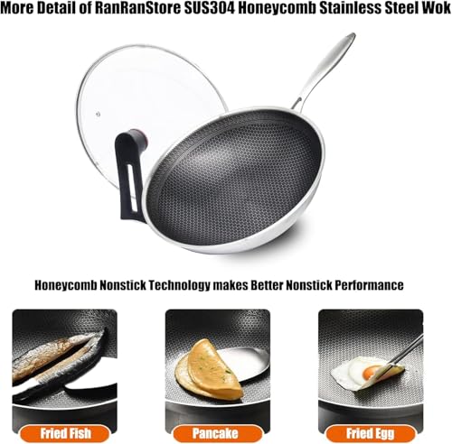 Generic - طاسة ووك احترافية 30 سم، حلة طهي مقاومة للخدش بغطاء زجاج ويد مريحة متينة ومناسبة للقلي السريع والتقليب والطهي