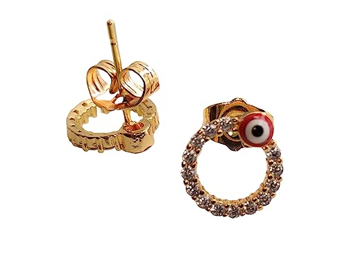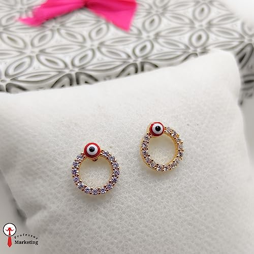 Generic - حلقان بروفيسور مطلية بالذهب عيار 14 قيراط، حلقان عالية الجودة من النحاس مرصعة بأحجار الزركونيا المكعبة، موديل pro-0140, زركون، متعدد الألوان، للنساء