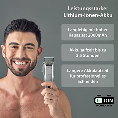 - مع بطارية ليثيوم أيون القوية ووظيفة التشغيل المباشر، يمكنك العمل بسهولة على التيار الكهربائي أو لاسلكيًا - للحصول على تجربة حلاقة احترافية.