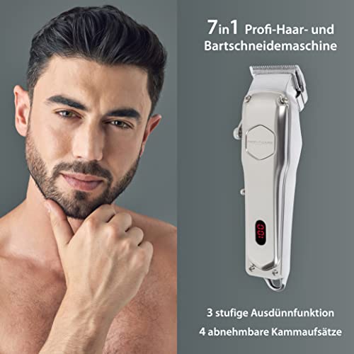 PROFI CARE - ماكينة حلاقة الشعر واللحية للرجال PC-HSM/R 3100 من بروفي كير مع 4 أمشاط قابلة للإزالة وميزة تخفيف بـ 3 مستويات مع وظيفة تشغيل بطارية أو كهرباء