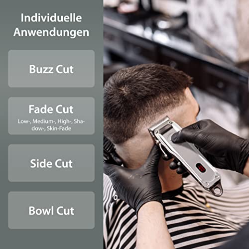 - بفضل رأس الحلاقة الدقيق المصنوع من الفولاذ المقاوم للصدأ ووظيفة التخفيف من 3 مراحل، تصبح كل قصة شعر تحفة حقيقية.