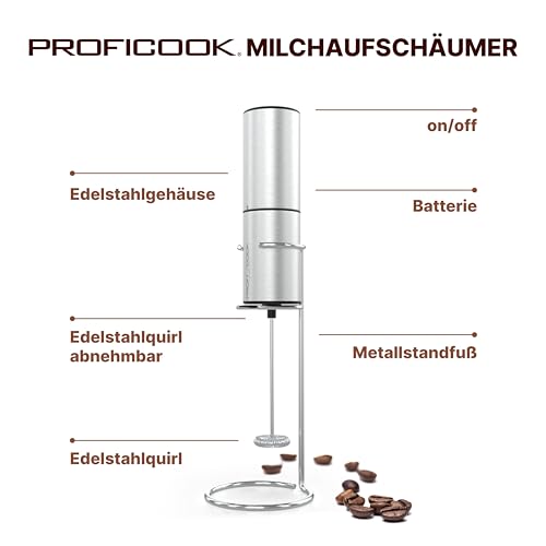 Profi Cook - ماكينة صنع رغوة الحليب الكهربائية طراز PC MS 1273، أداة خفق اللبن للكابتشينو واللاتيه والماكياتو، تعمل بالبطارية 13000 لفة/الدقيقة من بروفيكوك