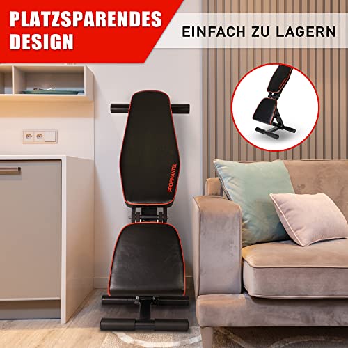 Profihantel - مقعد أوزان فاخر من بروفيهانتيل - مقعد انحدار متعدد قابل للتعديل | سعة تحميل قصوى 550 كجم | 21 وضع تدريب | مع حامل للساق | يتضمن دليل تدريب لمقعد التدريب
