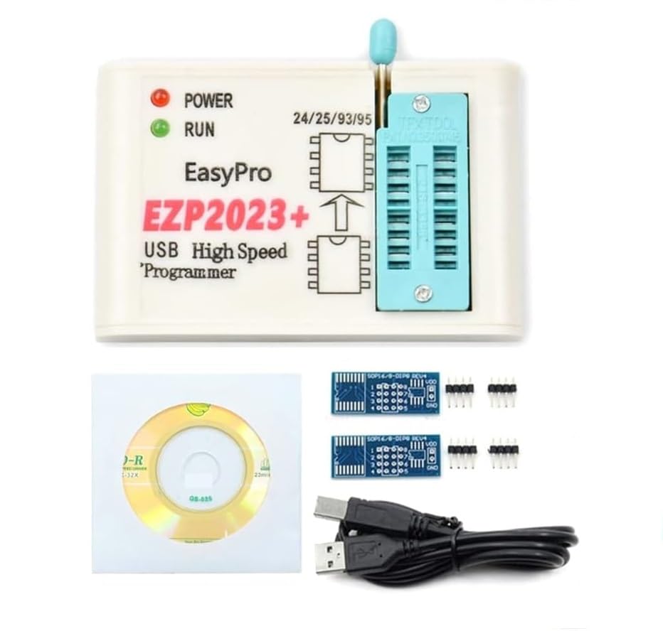 Generic - مبرمج مع مجموعة مكونات إلكترونية EZP2023، بمنفذ USB 2.0 بسرعة 12 ميجابت/ثانية، تدعم شرائح بيوس وأنواع ايبروم 24 و25 و93 وذاكرة فلاش 25