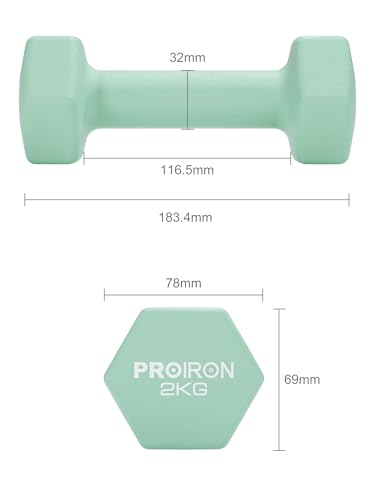 PROIRON - مجموعة دمبل حديد قطعتين، 1.5 كجم، 1.5 كجم، (1 كجم)، (1 كجم)، (4 كجم)، (6 كجم)، 8 كجم، 10 كجم، مجموعة دمبل بطلاء ناعم، لتدريب القوة من برو ايرون