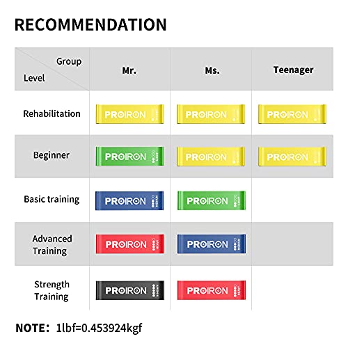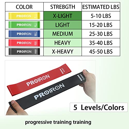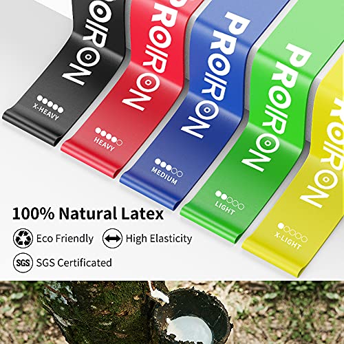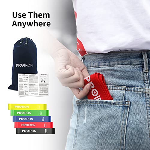 PROIRON - أحزمة مقاومة حلقية للتمرين، أحزمة مقاومة مطاطية من اللاتكس المضاد للانزلاق للتمارين الرياضية والتمدد والعلاج الطبيعي واليوجا مع شنطة حمل، عبوة من 5 قطع، من برو ايرون