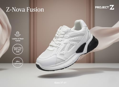 Project Z - كوتشي سنيكرز نسائي Z-Nova Fusion من Project Z – تصميم مدمج من الجلد والنسيج المسامي – نعل PVC مرن ومريح – حذاء كاجوال خفيف للمشي والجامعة – مقاسات (37-41)